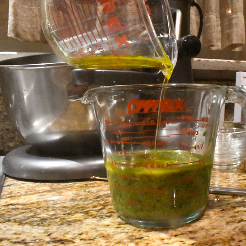 If making in advance, reserve a bit of the oil when otherwise adding to the basil mixture. Transfer the sauce to a container and cover it with a small layer from the reserved oil. Seal and keep overnight.