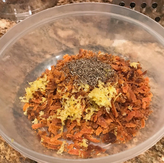 Grate the bottarga with a shredder. Use the largest holes for a very course grate. Combine with lemon zest, 1/2 tsp black pepper and several tablespoons olive oil. You want to use enough oil to keep the mixture soft and moist.